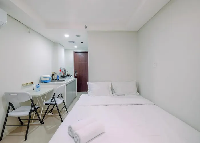Fancy And Nice Studio At Daan Mogot City Apartment By Travelio also includes a kitchen with a refrigerator and a cooktop. Fancy And Nice Studio At Daan Mogot City Apartment By Travelio is in proximity to the nearest bus stop Halte Pesakih.